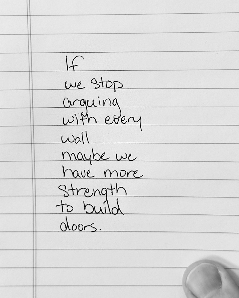 If we stop arguing with every wall, maybe we have more strength to build doors.